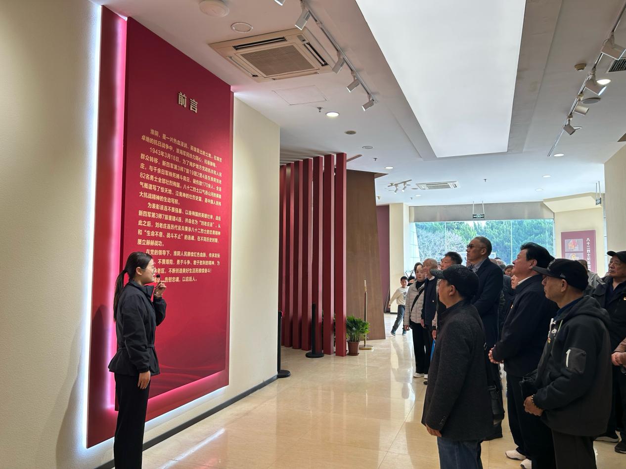 随后,全体人员参观了新四军刘老庄连纪念馆展厅。在讲解员的引导下,大家认真观看历史图片、文献资料、实物展品,详细了解刘老庄连82位勇士浴血奋战、壮烈殉国的英雄事迹,重温那段烽火连天、不屈抗争的峥嵘岁月。一个个感人故事、一段段峥嵘历史、一件件珍贵文物,让在场党员接受了一次深刻的革命传统教育和精神洗礼,深刻感悟革命先辈忠诚于党、无私奉献、舍生取义的崇高精神。
