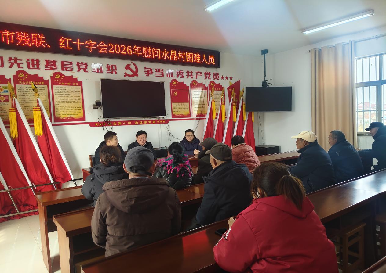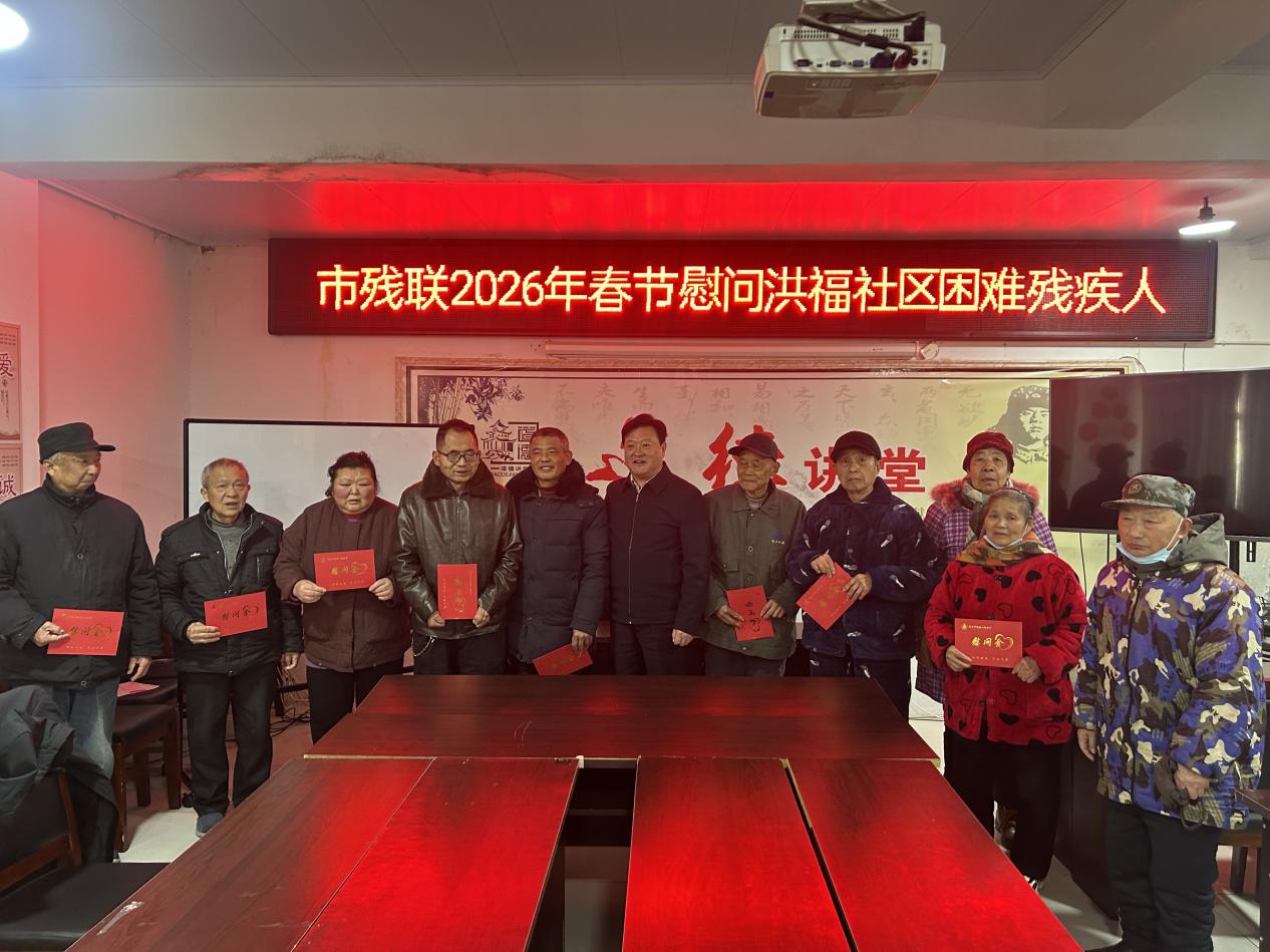 同时,2月3日至4日,市残联联合市红十字会进行春节走访慰问活动。党组成员、副理事长刘亚明带队,深入挂钩社区、帮促村困难残疾人及困难党员家中,与群众促膝交谈,详细询问身体状况、家庭收支、过冬取暖、年货筹备等情况,叮嘱大家注意用火用电安全,并送上慰问金、米油等慰问品以及春联和“福”字,致以诚挚的新春问候和节日祝福。一句句贴心话语、一份份暖心物资,让困难群众真切感受到党组织的关怀与温暖,现场洋溢着和谐温馨的节日氛围。