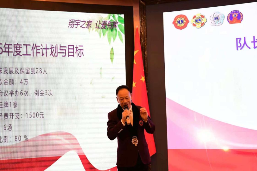 张家平狮兄登台致欢迎词,他向到场嘉宾致以诚挚谢意,娓娓道来服务队从筹备到落地的点点滴滴,字里行间满含对公益事业的热忱。他郑重承诺,未来翔宇之家服务队将秉持专业、高效、真诚的初心深耕公益沃土,以脚踏实地的行动回馈社会,让温暖的狮爱照亮千家万户。