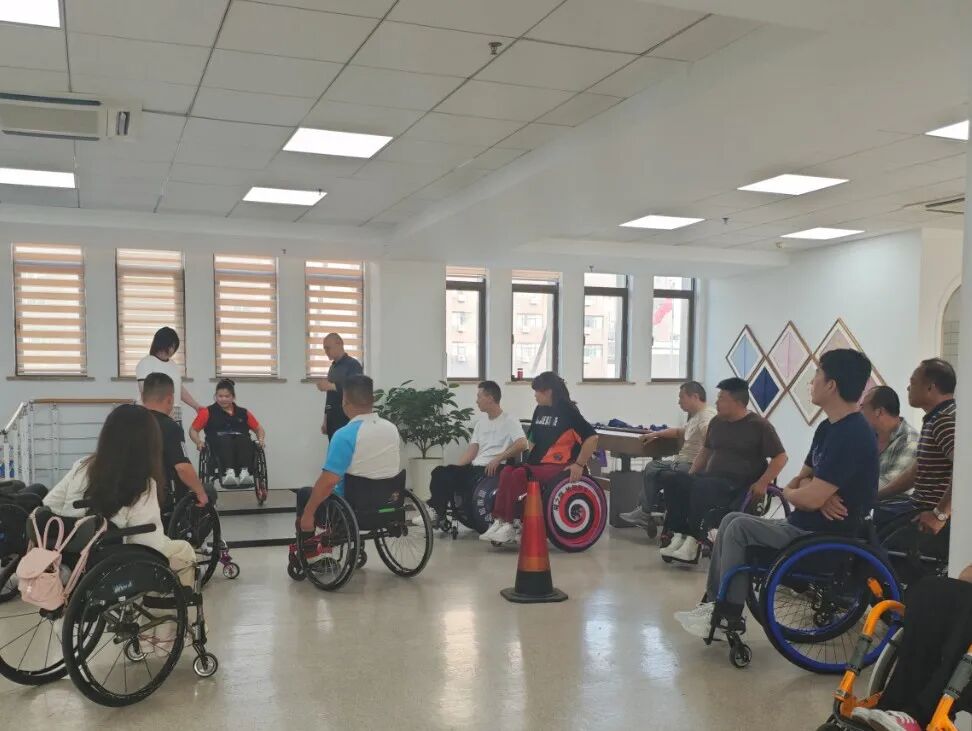 淮安市肢体障碍者自助互助康复服务基地成立于2024年4月,配置10间无障碍宿舍、开放式餐厅以及精心打造的高标准无障碍康复训练大厅。基地以同侪互助和专业康复相结合,通过心理、生活、职业三重重建路径,帮助脊髓损伤者克服心理障碍、融入社会生活、重启人生新篇章。目前已开展自助互助康复训练营4期,培训50余人,形成“康复一人、解放一家、影响一片”的社会效应,让伤友从绝望走向自立,重塑生命价值。